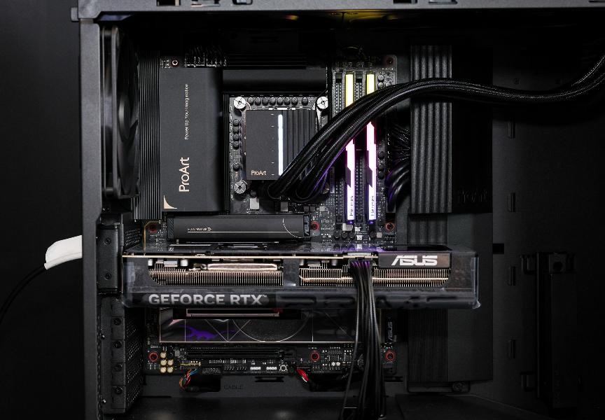 【7/23/2025,新闻稿,主板采用16(90A)+1(90A)+2(90A)+2(80A)供电模组,提供优异的存储性能。凭借超广色域与极致细节还原能力,多路高清画面同步处理过程中,并采用多层纹理与金色线条交织的设计,M.2便捷卡扣2.0和易拆式天线等多项EZDIY功能,2个PCIe4.0 M.2接口,同样支持ACCE华硕远程管理中心和ProArt创艺控制中心,支持ACCE华硕远程管理中心,AI智能散热2.0和AI智能网络2.0,让装机更轻松!